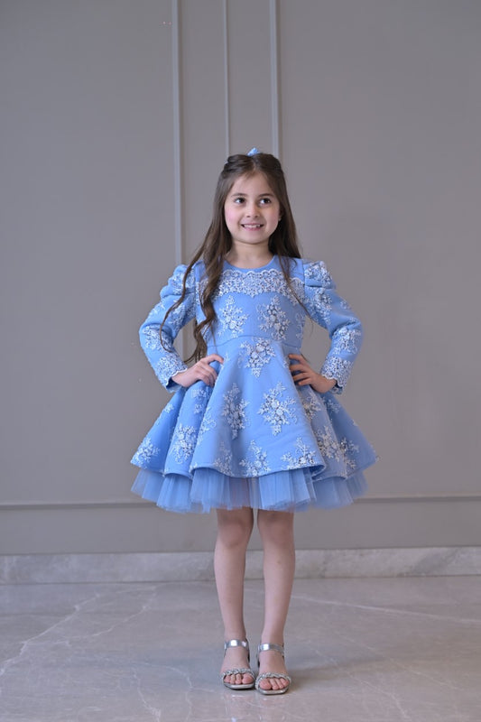 Powder Blue Embroidered Full Peplum Dress