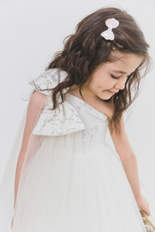 Ivory Sequence One Shoulder Glitter Drape Dress