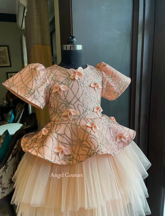 Baby Pink Glitter Fuchsia Bunch Flowers Dress