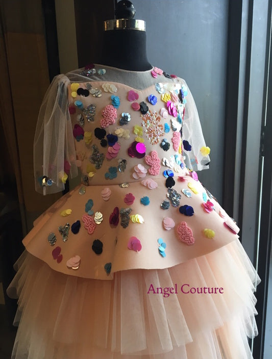Shades Of Pink Multilayer Net Glitter Roses Dress