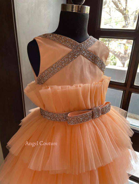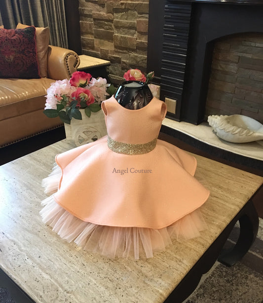 Peach Glitter Golden Bow Dress
