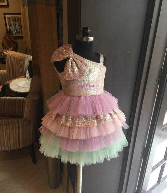 Ivory Baby Pink Offshoulder Flamingo Dress