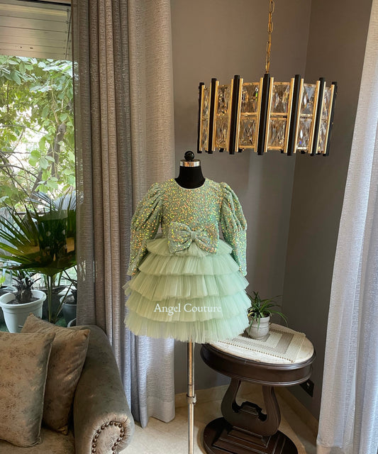 Mint Green Sequence Velvet Multilayer Dress