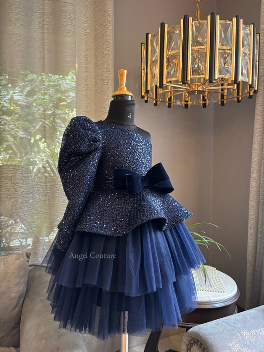 Navy Blue Sequence Peplum Dress