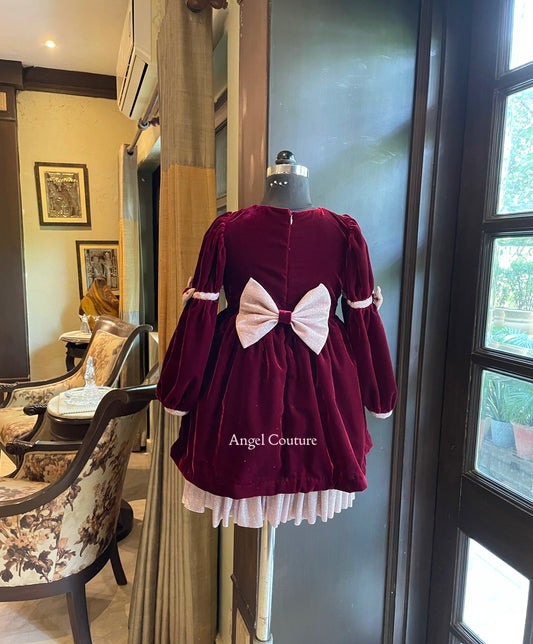 Maroon Baby Pink Velvet Glitter Dress