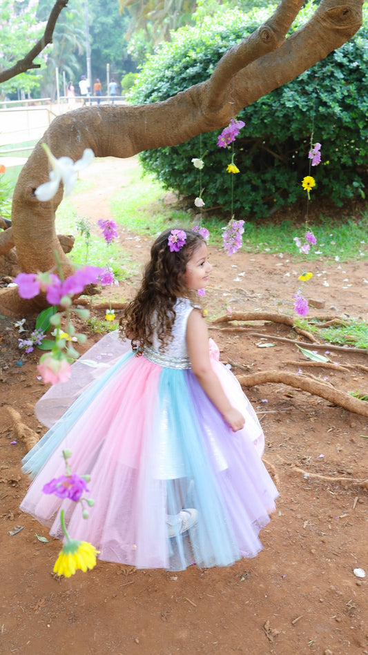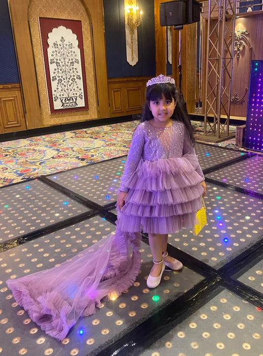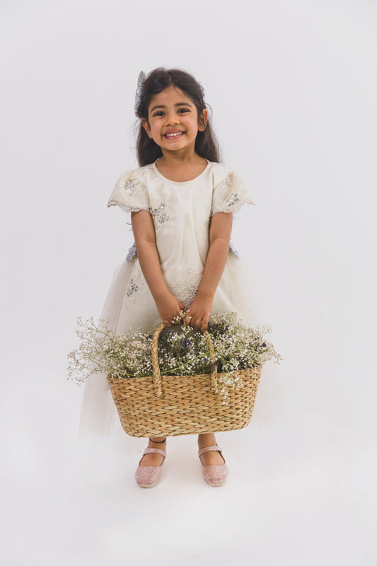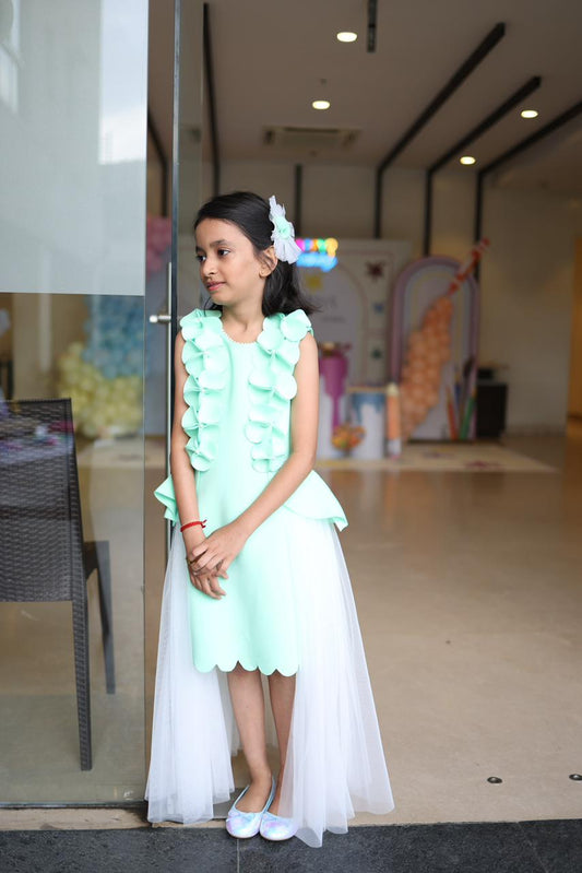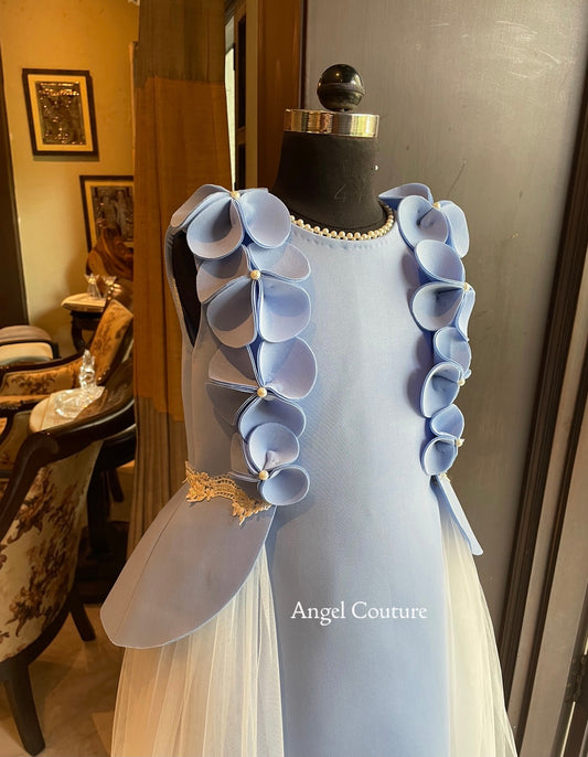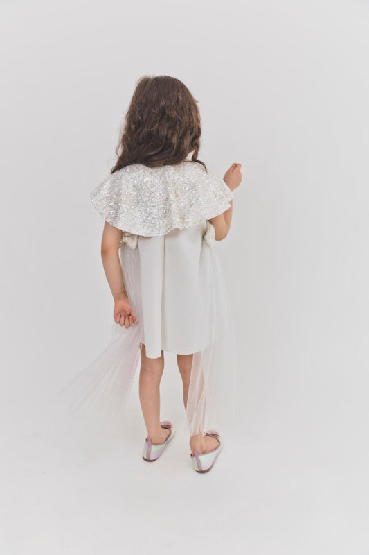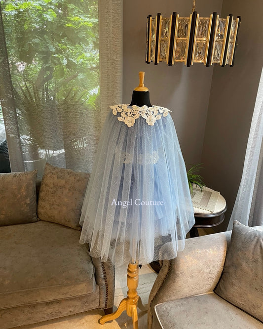 Ice Blue A Line Silver Frill Shoulder Cape Dress