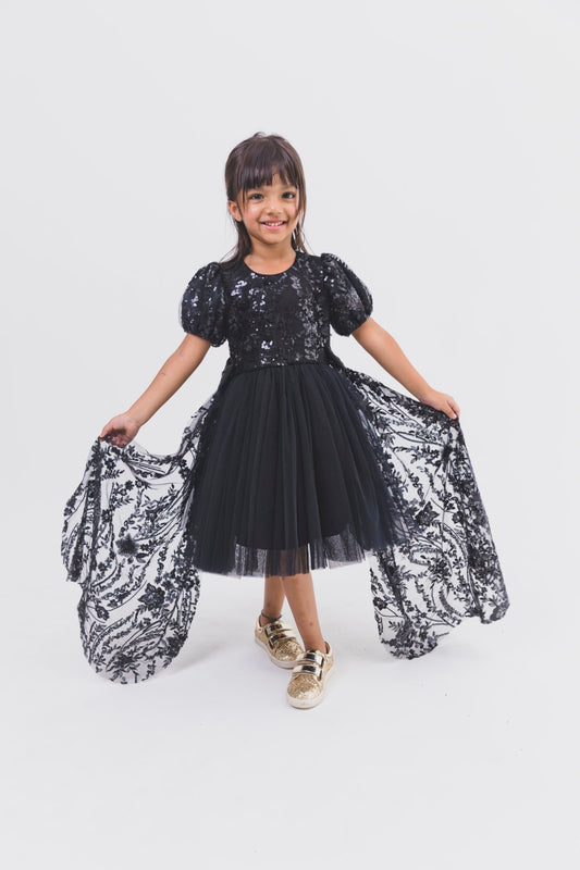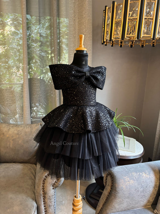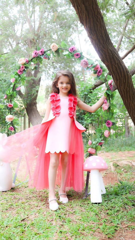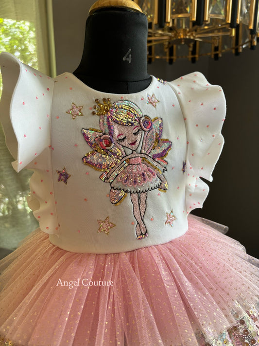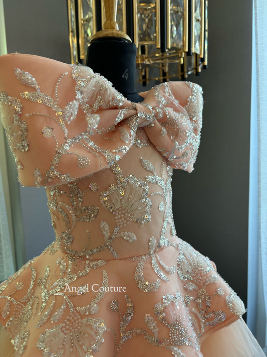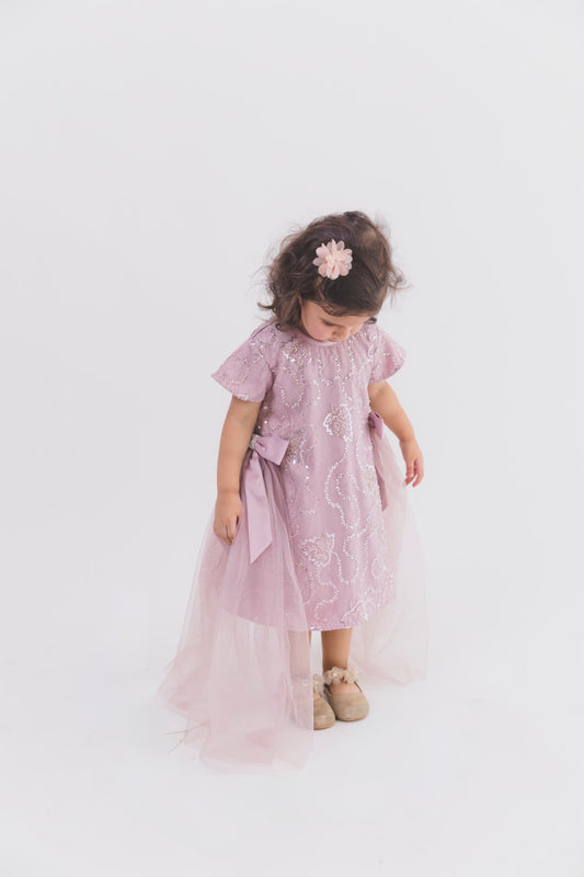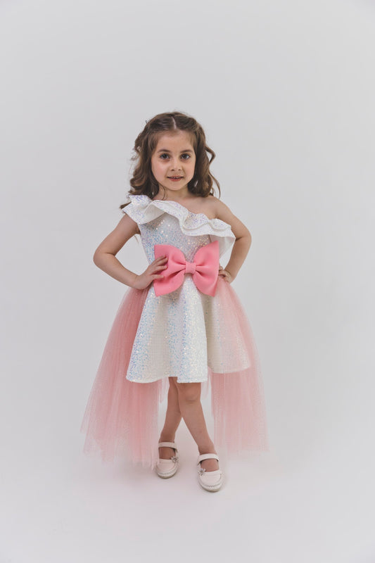 Baby Pink Silver Sequence Shoulder Drape Dress