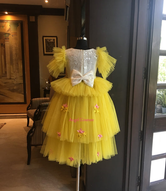 Lemon Sequence One Shoulder Glitter Drape Dress