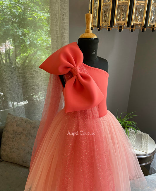 Raspberry One Shoulder Glitter Bow Drape Dress