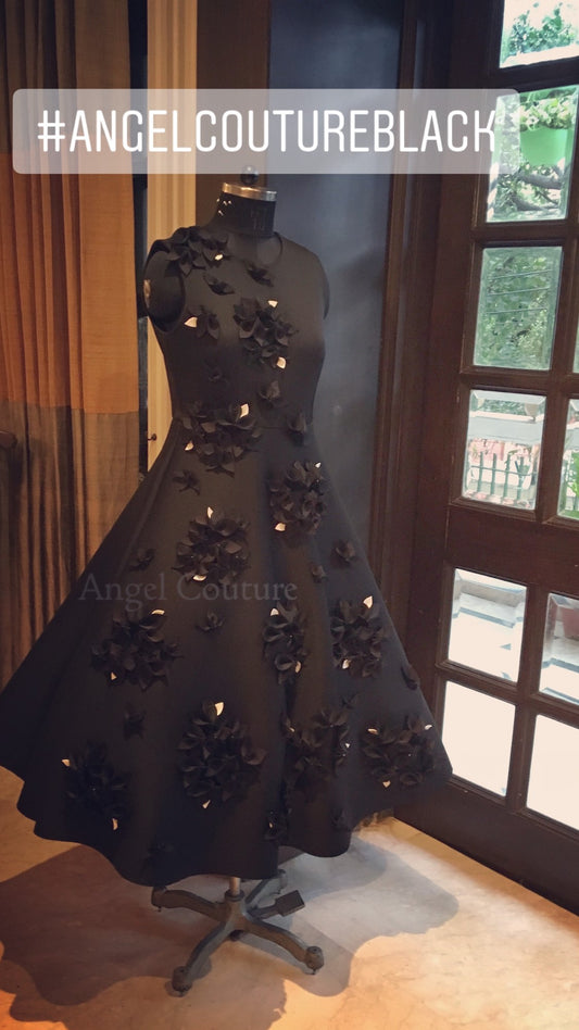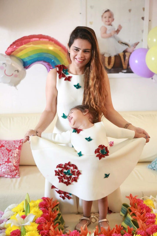Ivory Maroon Flowers Bunch Midcalf Dress