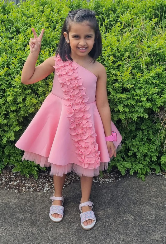 Ivory Shades Of Pink One Shoulder Falling Flowers Dress