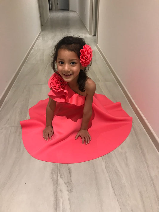 Fuchsia Pink One Shoulder Rose Dress