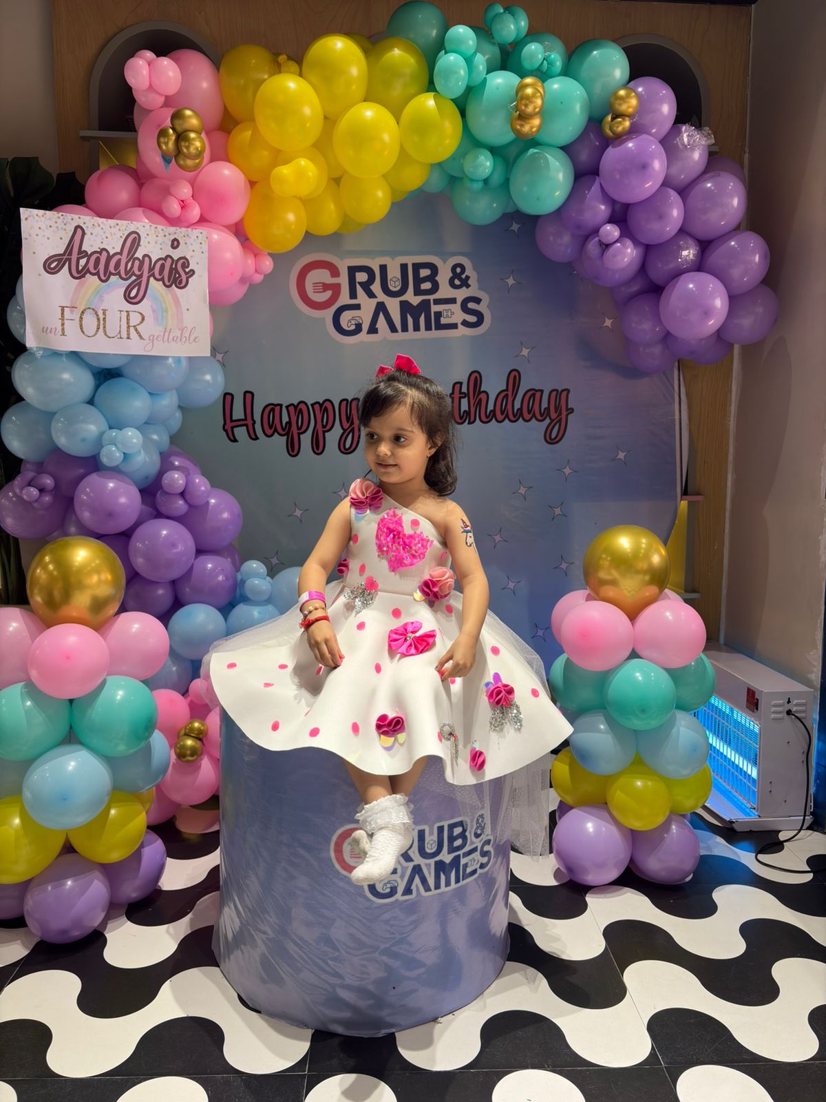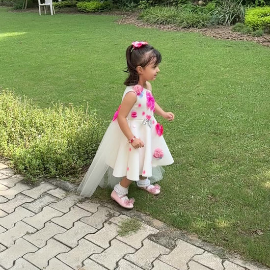 Ivory Polka Sequence One Shoulder Bows Flair Dress